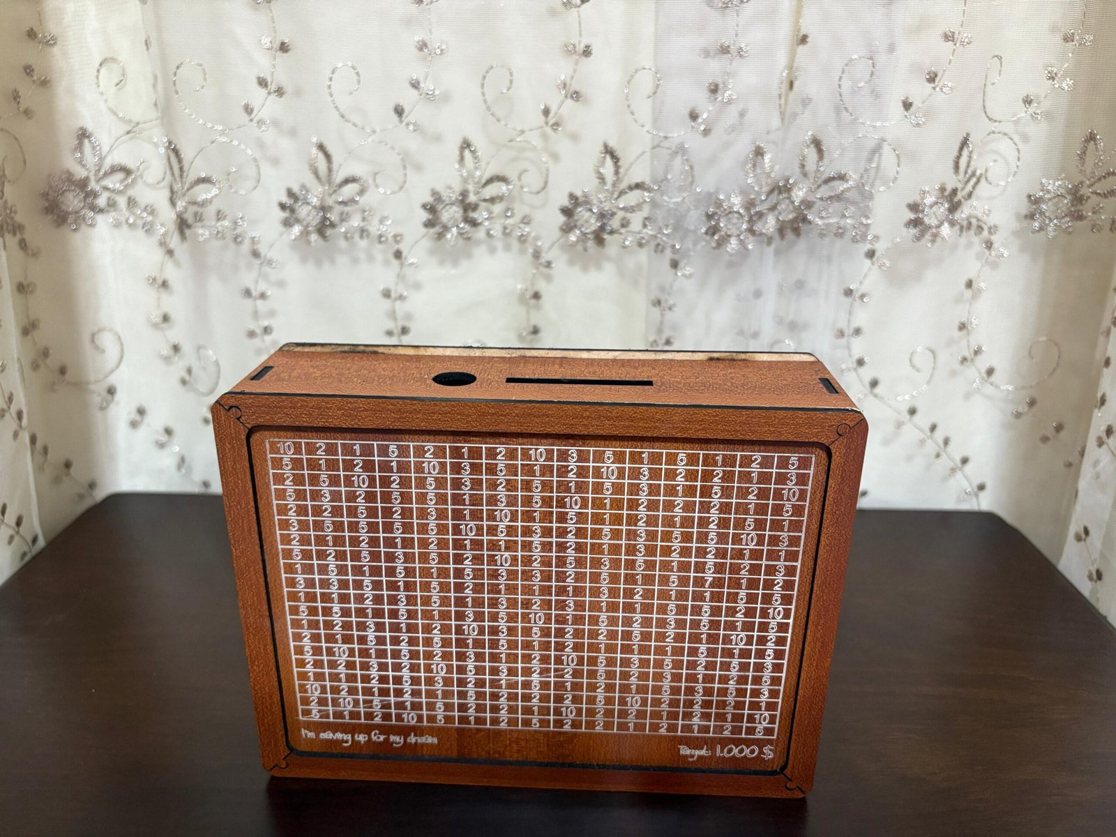 #SavingsBox #WoodenPiggyBank #MoneySavingChallenge #SavingForMyDream #LaserEngravedBox #HandmadeGift #MotivationalGift #FinancialGoals #SaveMoney #GiftForCouples #PersonalizedSavings #UniquePiggyBank #1000DollarChallenge